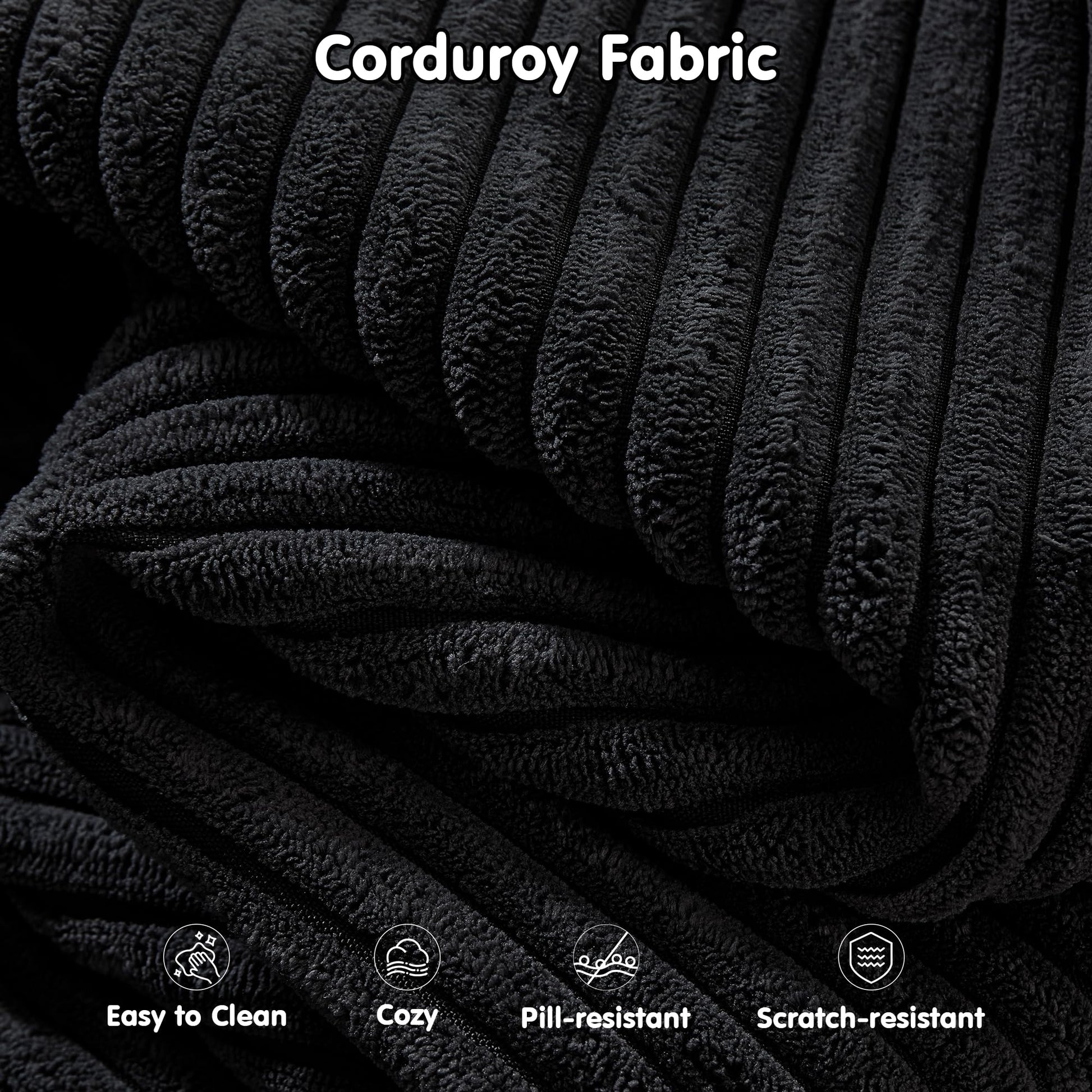 Corduroy Fabric:Wrapped in soft-touch corduroy fabric, this sofa brings a cozy, inviting texture to your living space. The material is not just comfortable—it’s also stain-resistant and durable, making it a smart choice for families, pet owners, or anyone who actually uses their furniture every day.